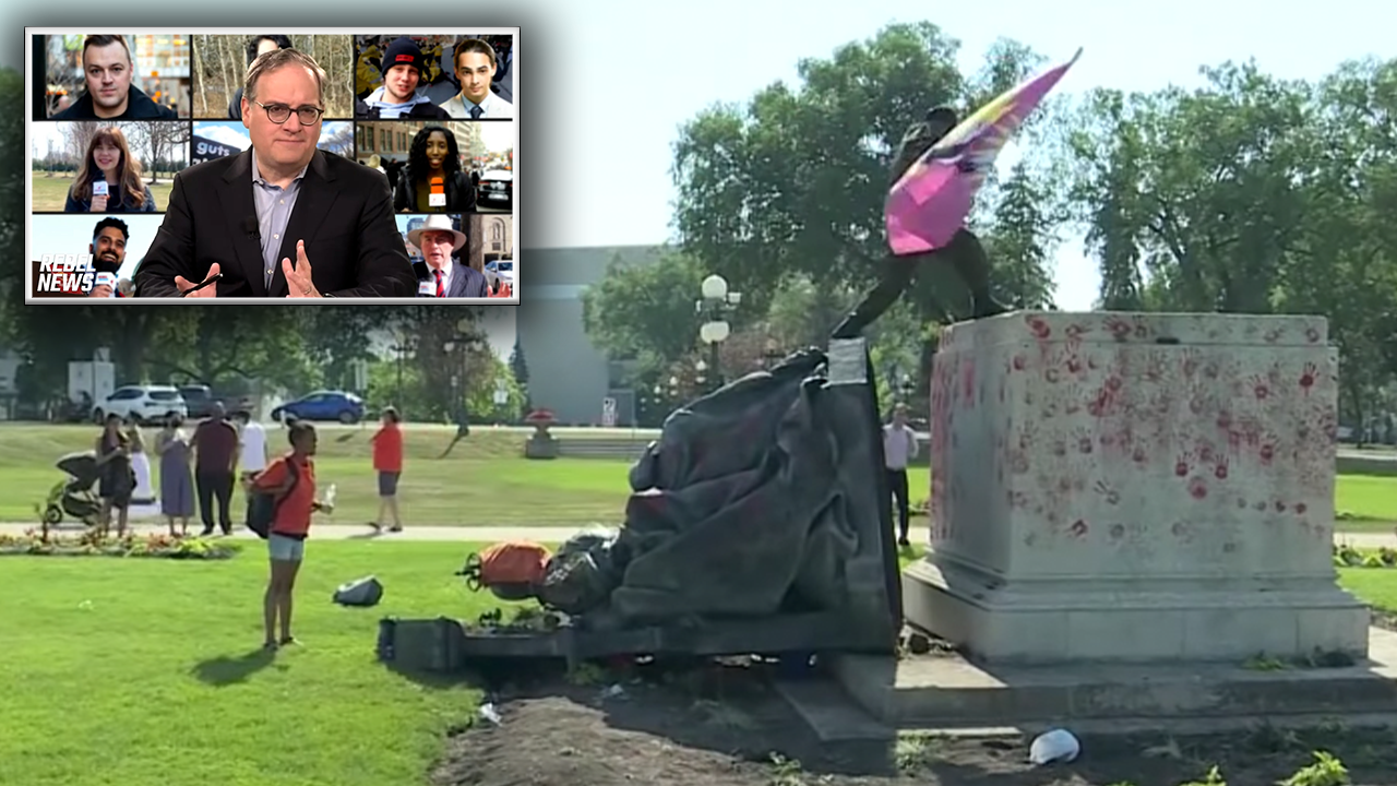 A massive mob, highly organized, with matching outfits, coming with ropes and tools, in broad daylight, not the dead of night, in the full sight of a huge police force, just tied ropes to a statue of Queen Victoria, right on the steps of the Manitoba Legislature, and just pulled it down.