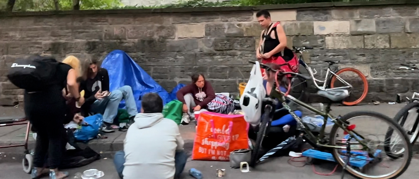 There were entire encampments of homeless people sitting on sidewalks. Several were getting inebriated on booze or getting high on drugs. It did not feel safe.