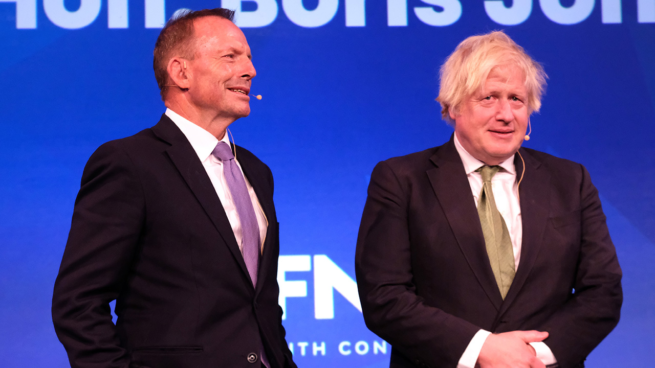 Sitting on stage alongside former Australian prime minister Tony Abbott and moderator John O'Sullivan, a former speech writer to Margaret Thatcher and a current British political commentator, Johnson's appearance kicked off the conservative networking event.