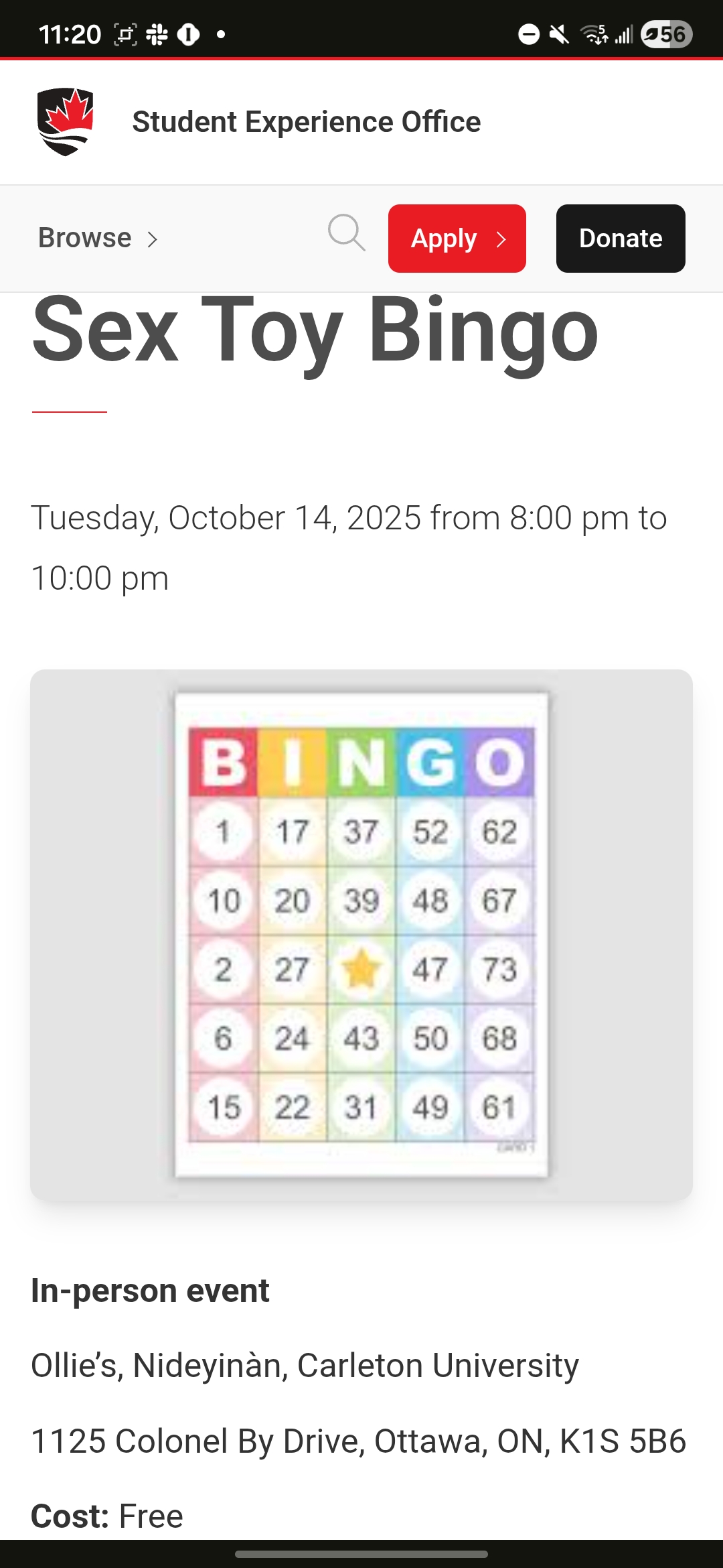 According to Carleton’s website, the October 14 event will be held at Ollie’s — a student venue on campus — and is being billed as “a night of laughs, learning, and a little friendly competition.” The description invites students to “play to win exciting (and spicy!) prizes while exploring themes of pleasure, consent, and sexual wellness in a fun, inclusive environment.”