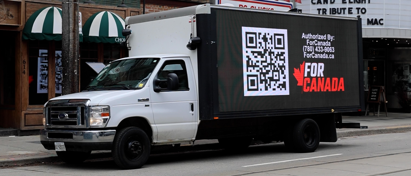 So, in order to get our truck into these ridings, Rebel News Commander Ezra Levant had to set up a registered third-party advertising organization called For Canada.