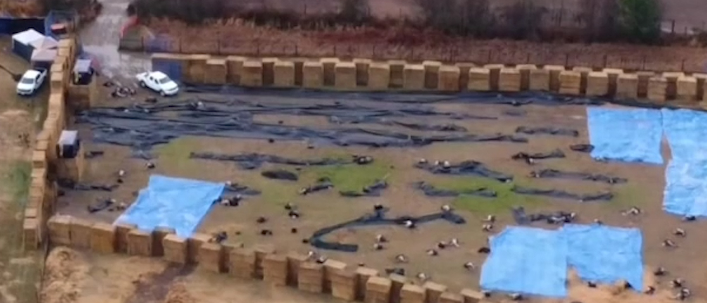 Rebel News drone footage revealed the corpses of the ostriches, which, in typical government fashion, they didn't even have enough blue body bags or tarps to cover.