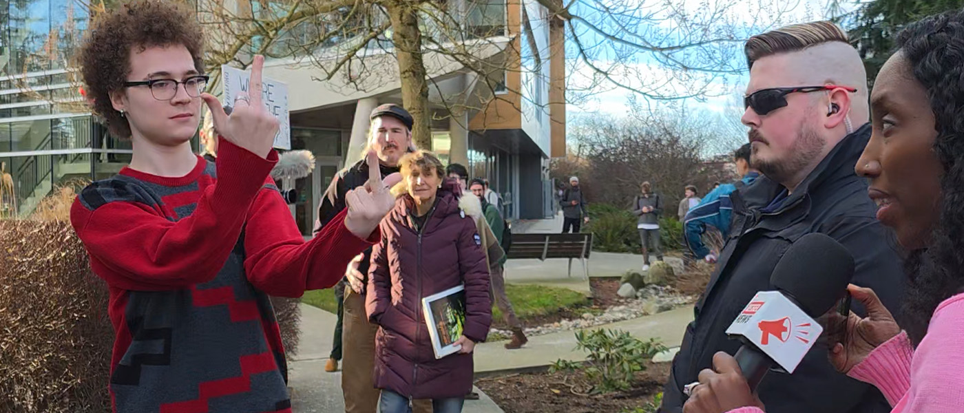 Rebel News was also on site days later at the University of British Columbia, where the situation escalated into a far more dangerous confrontation. Hundreds of students joined union representatives and activists in counter-protesting the arrival of Widdowson and OneBC Party leader Dallas Brodie.
