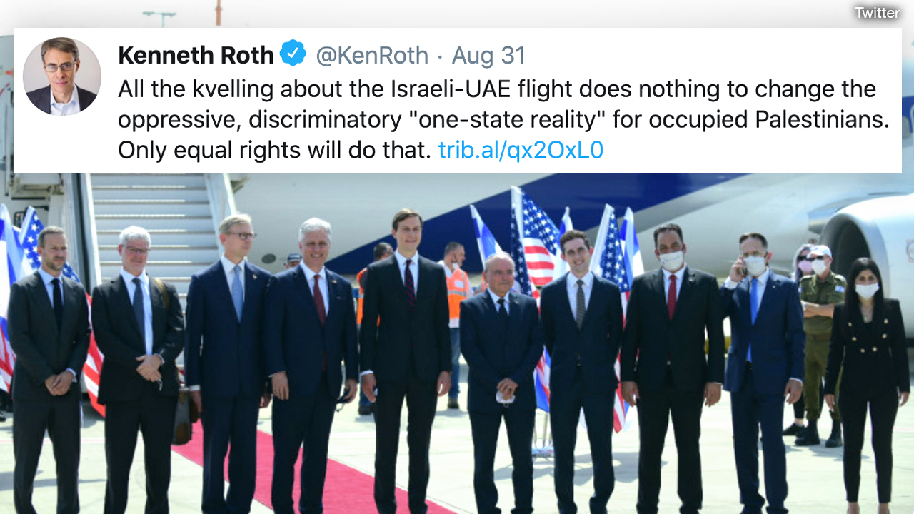 Human Rights Watch chief mocks Jews supporting new Israel-UAE peace deal