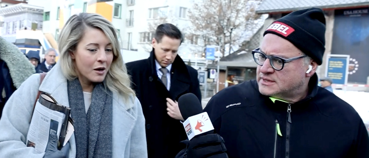 Industry Minister Melanie Joly attempted to avoid scrutiny after being questioned by Rebel News publisher Ezra Levant at the World Economic Forum summit in Davos, Switzerland on Tuesday.