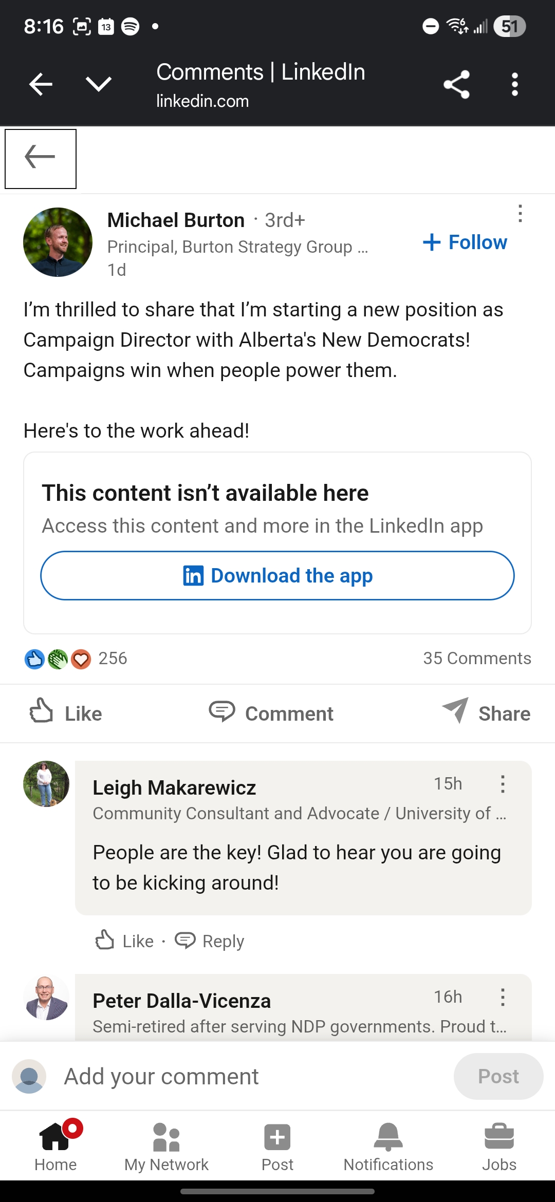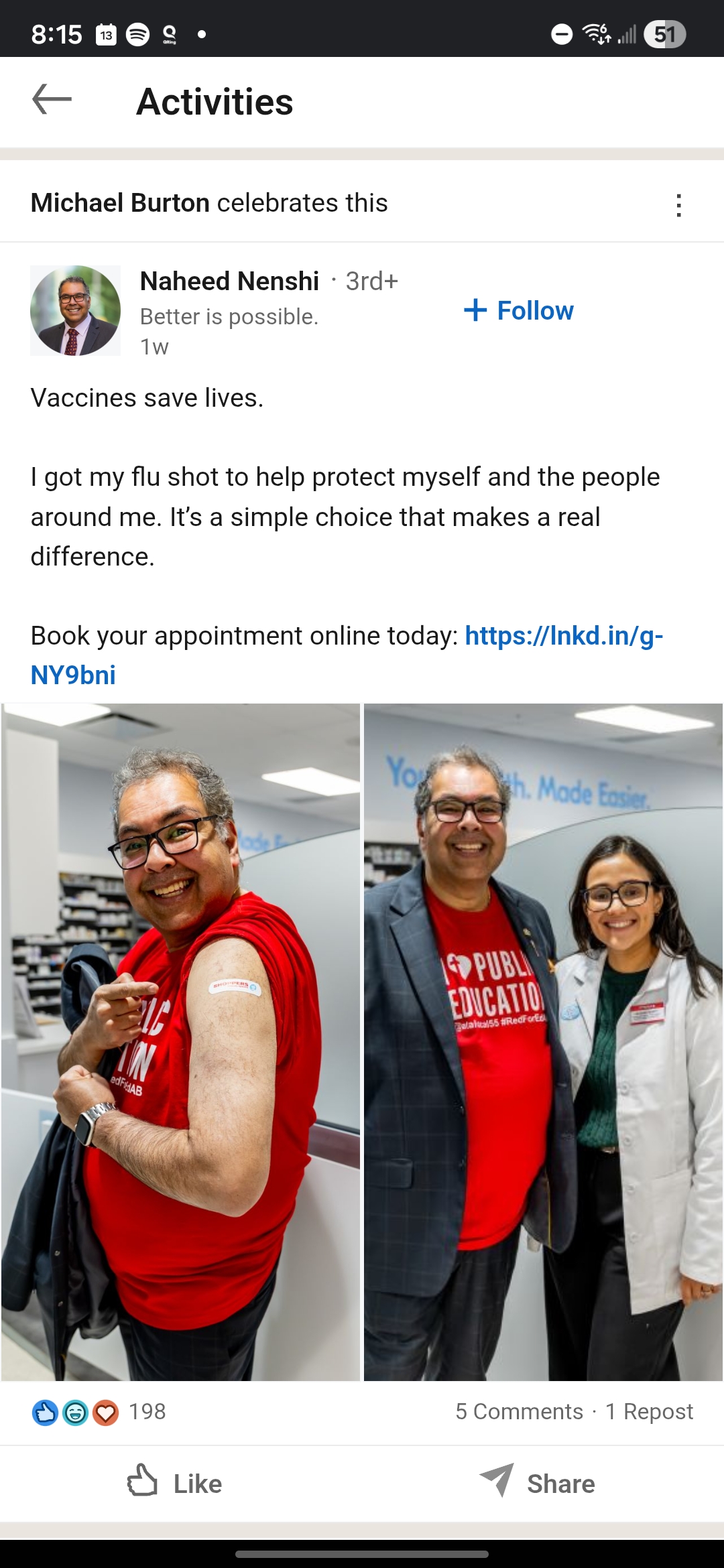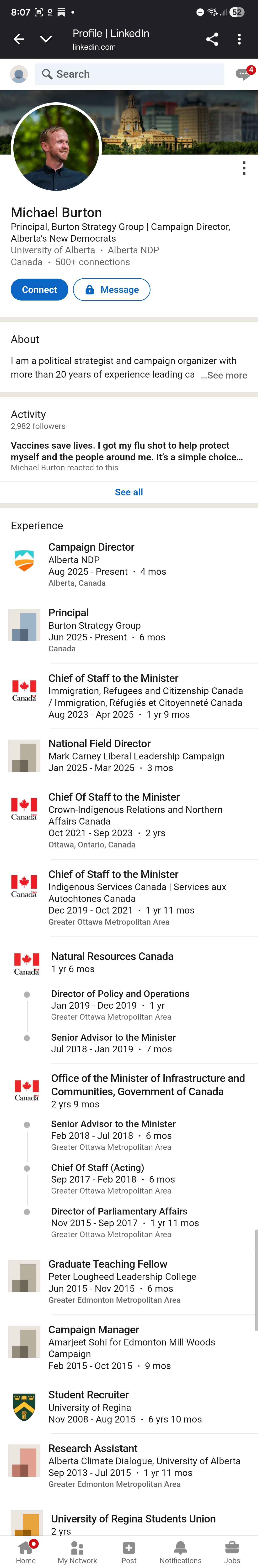 The breadcrumbs were there early. Before anyone knew he was about to take over the Alberta NDP’s campaign, Michael Burton — a Liberal operative who served as National Field Director for Mark Carney’s Liberal leadership campaign — was already publicly celebrating Naheed Nenshi’s flu-shot photo-op on LinkedIn.