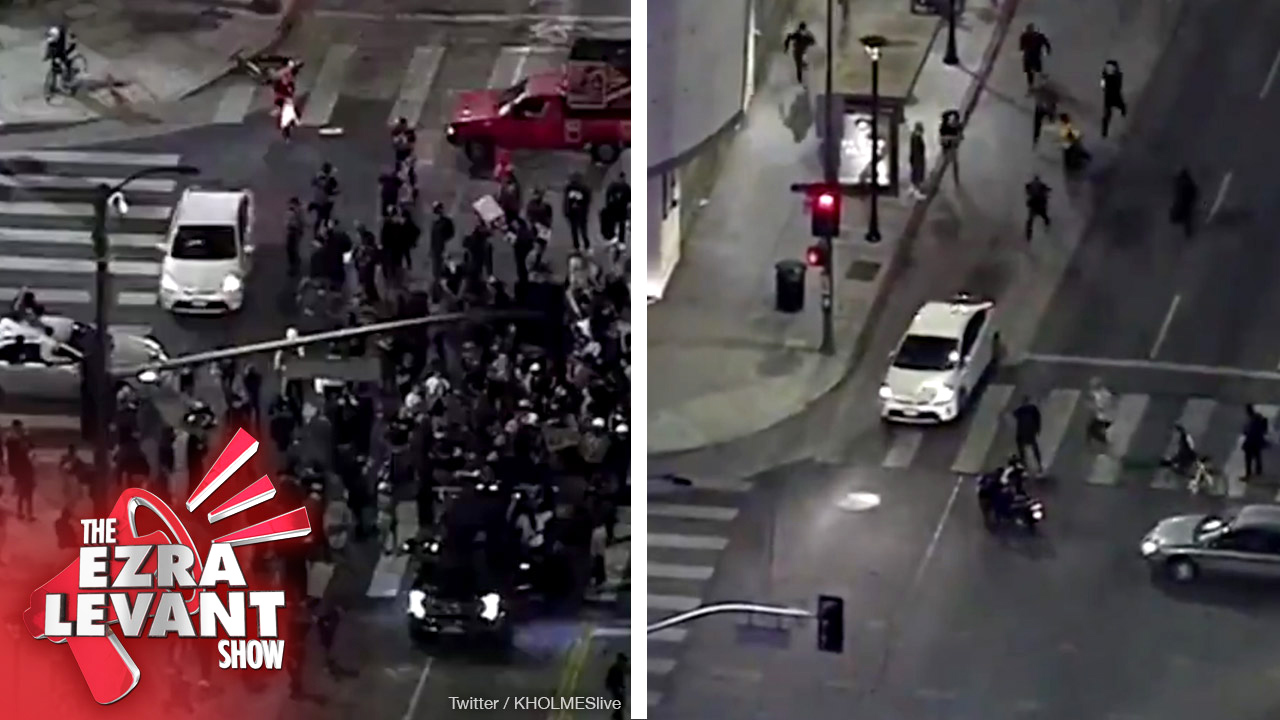 And I want to show you a video from Los Angeles. It shows a man in a Prius, simply driving slowly through a crowd of protesters in the road.