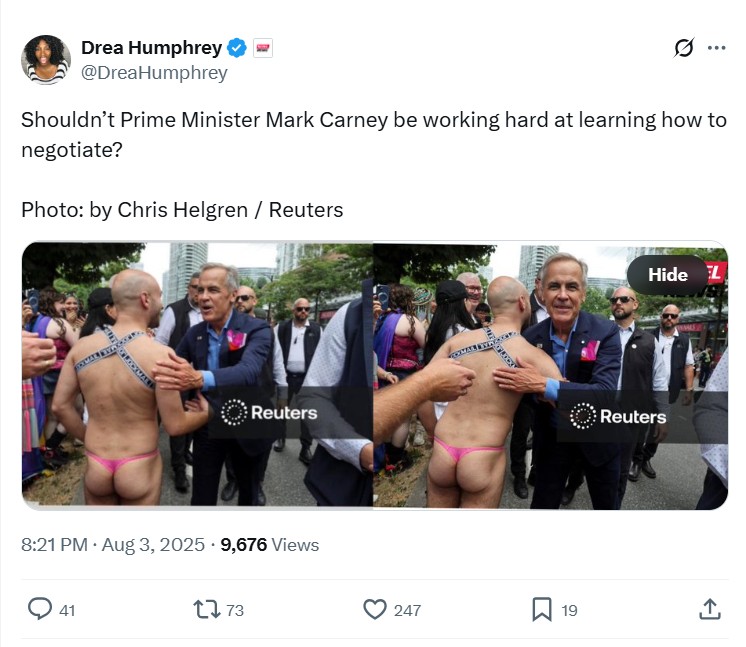No, it’s not AI, just Mark Carney and a pink g-string at Vancouver’s Pride Parade