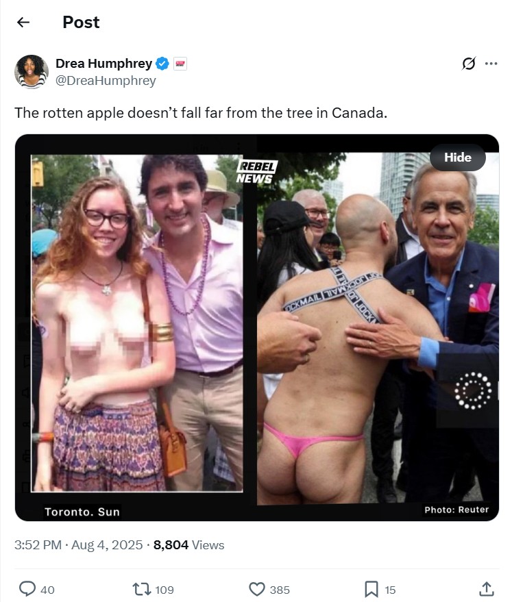 Despite the scandalous photos being authentic, Canada’s corporate media has been almost entirely silent. From what I could find when searching, not a single CBC, Global News, or CTV segment covering the PM's Pride stop has published the newsworthy moment or raised questions about how the unprofessional moment could impact credibility during a time when Carney is already facing scrutiny over failed trade negotiations with the U.S.