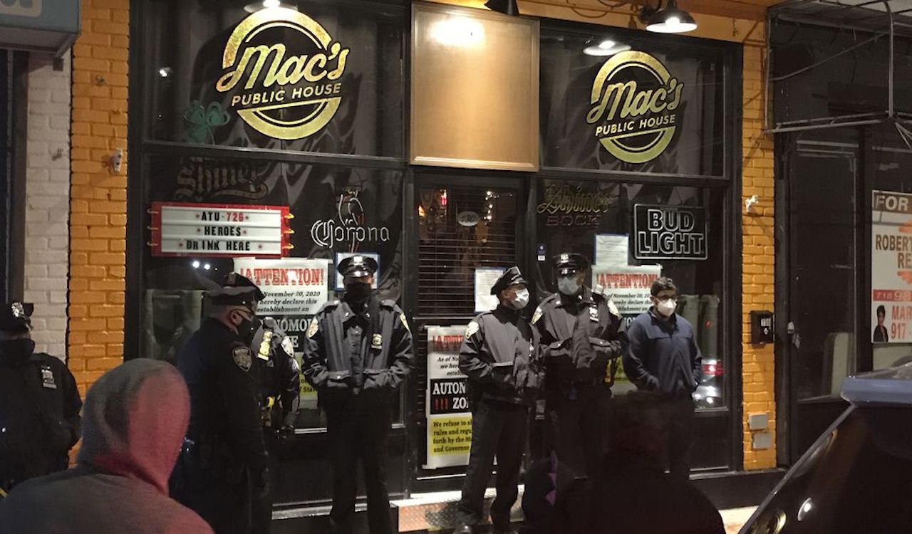 The owner of Mac’s Public House, Danny Presti, was taken away in handcuffs by officers on Tuesday night as various agencies reportedly descended upon the place of business. Cuomo declared Mac’s Public House to be in an “orange zone,” which mandated Presti and the bar’s co-owner Keith McAlarney to shut down their business without compensation from the state. According to a report in SILive, Presti and his business partner were serving food and beverages but were not charging patrons any money.