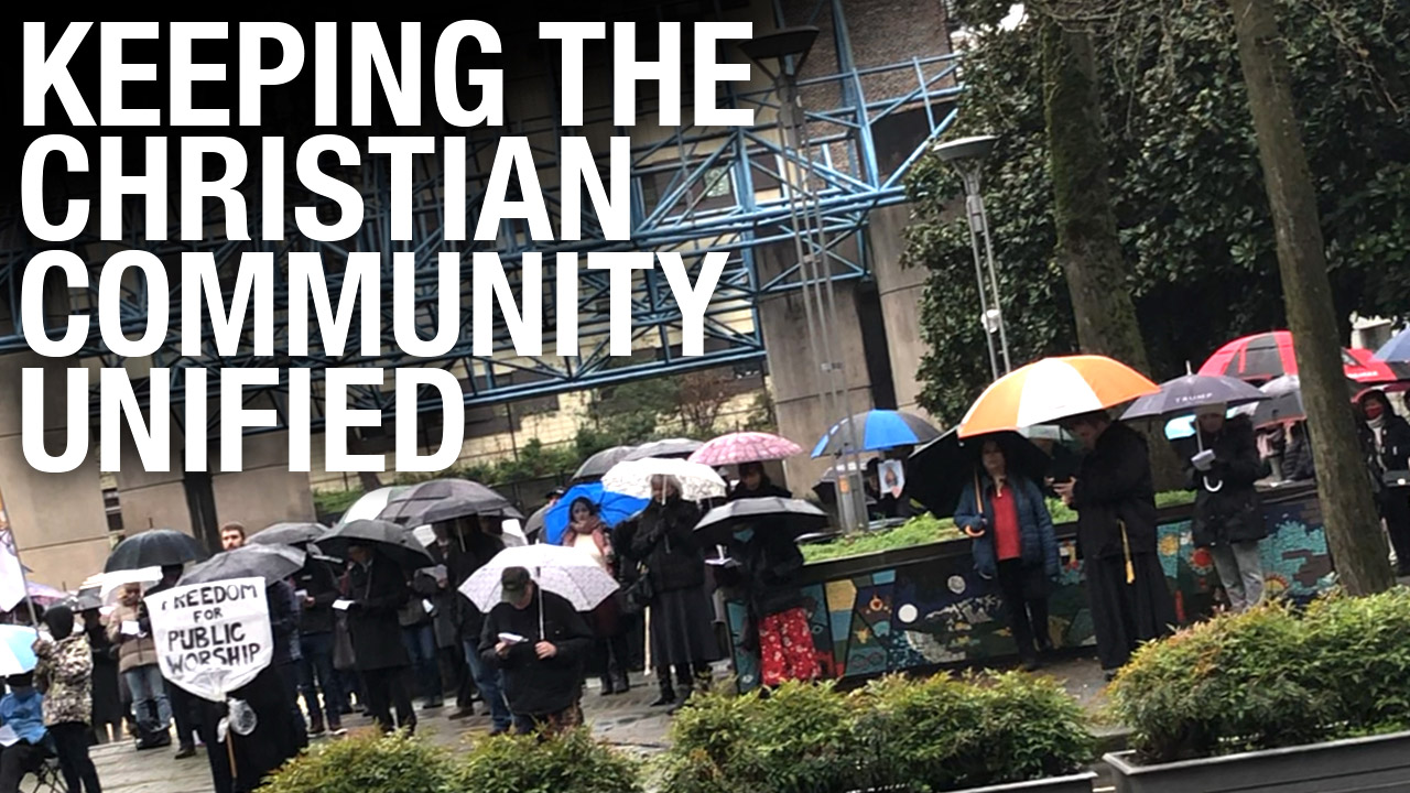 It was a somber feeling to see around 100 Catholics kneeling to worship in the pouring rain to protest against British Columbia’s public health ban, which has forced places of worship to close their doors to their communities, no matter what COVID-19 prevention measures they have in place, and no matter how desperate some may be to worship there.