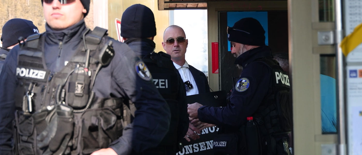 Swiss authorities briefly detain Canadian activist Billboard Chris as he attempts to engage with people outside the World Economic Forum, where the world’s powerful elite have gathered.