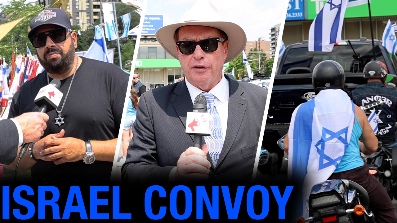 At the same time about two hours away, in Thornhill, dozens of cars and motorcycles assembled brandishing the flags of Israel and Canada.