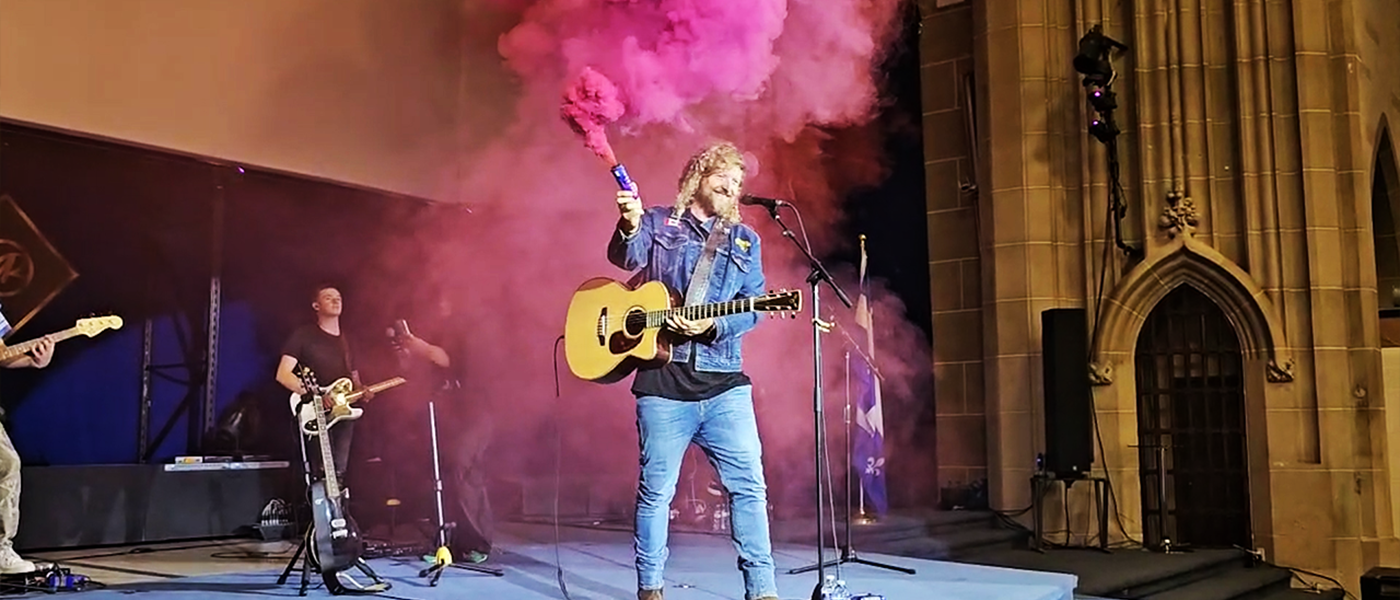 Rebel News offre une récompense de 1 000 $ pour toute information permettant d’identifier l’homme qui a allumé et lancé deux bombes fumigènes pendant le service religieux de Sean Feucht, à l’église Ministerios Restauración, à Montréal.