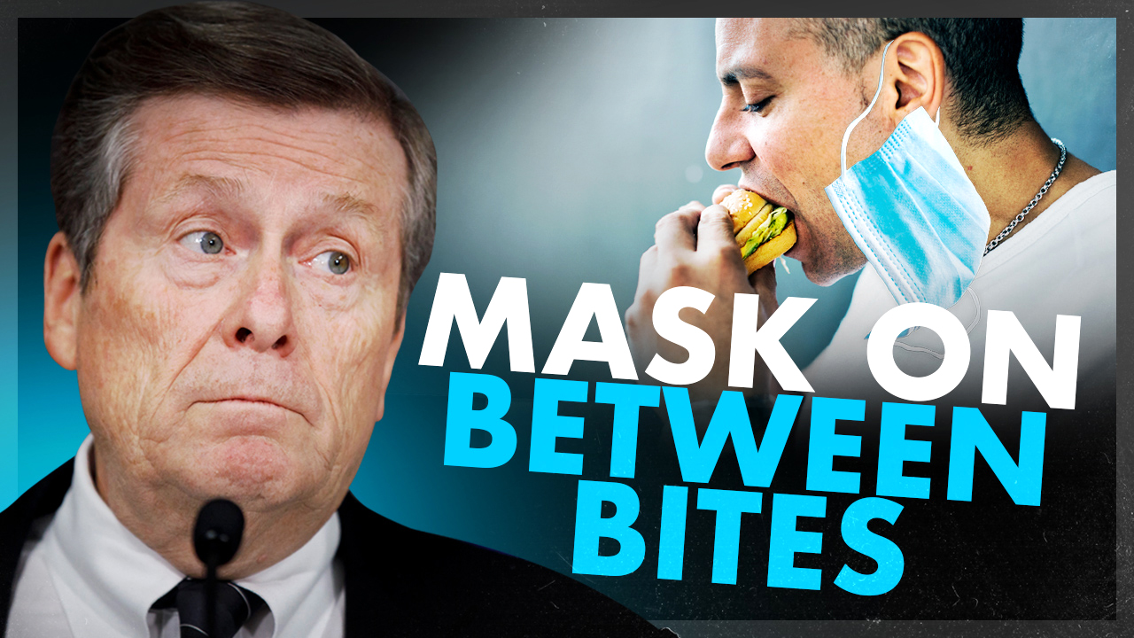 Namely, Mayor Tory wants patrons to keep their non-medical muzzles — er, masks — on in-between bites and sips of their food and beverages! He actually said that, although his spokesman recently claimed this was a misinterpretation of what the mayor was advocating (please view the video evidence pertaining to Tory’s eating etiquette remarks and you be the judge).