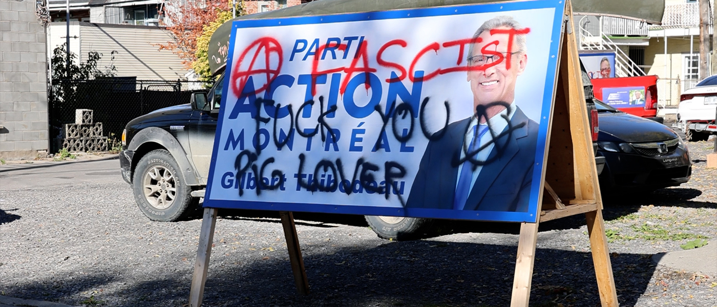 Le 27 octobre au soir, le quartier général d’Action Montréal a été victime d’un acte de vandalisme, avec des graffitis haineux et des messages violents.